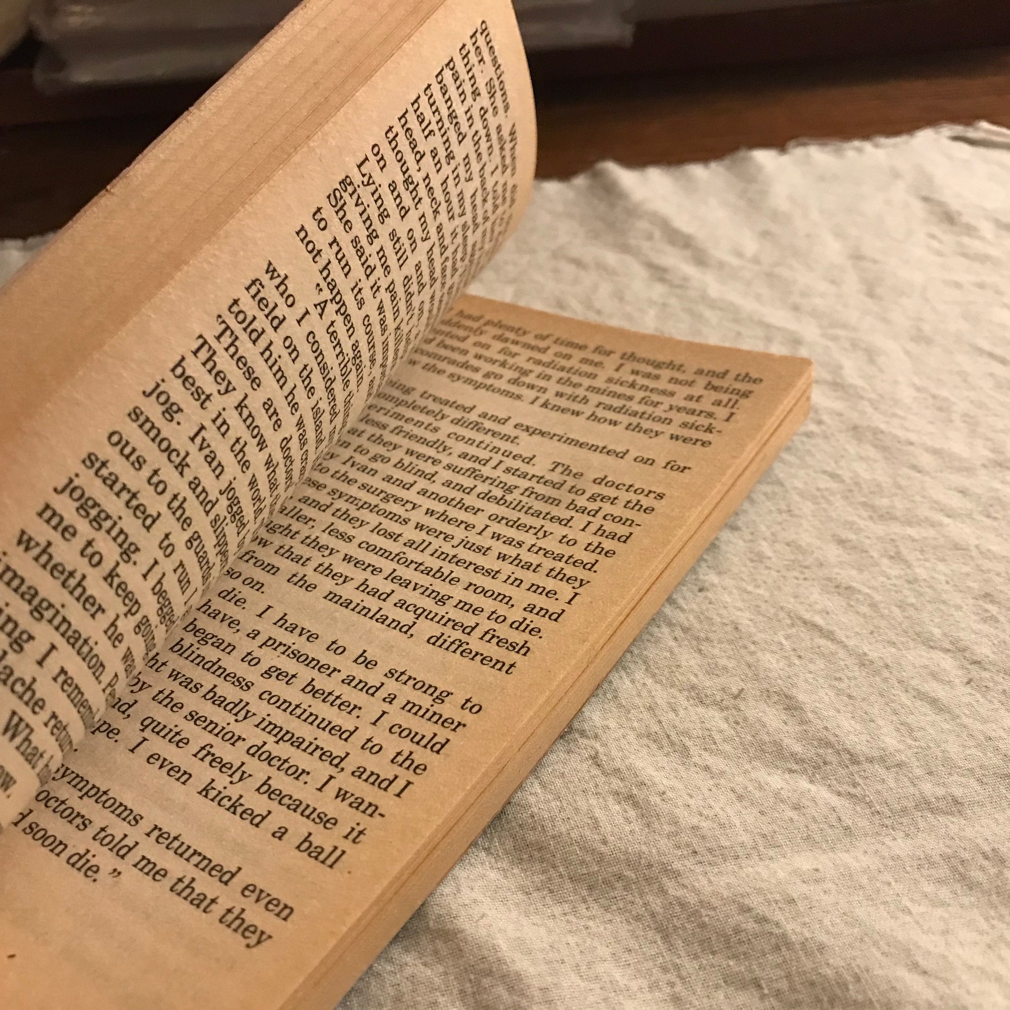 This PB is in okay shape: uncracked spine, sits straight, and clean inside, but some edgewear, clipped cover corners and a bite out of the back; fairly toned pages. Will get the job done as a reading copy, though.