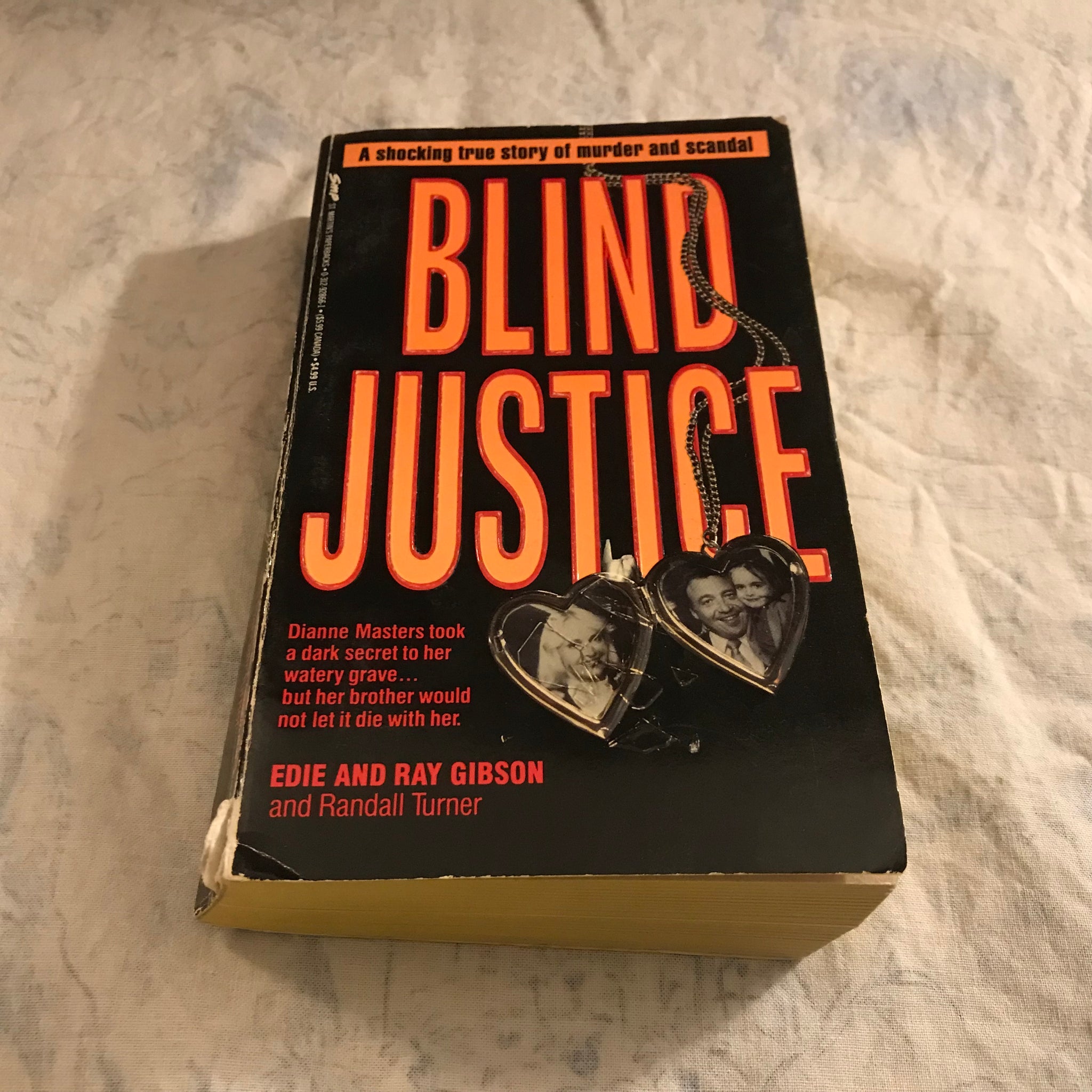 By Edie and Ray Gibson, and Randall Turner. Gotta "love" the raised-elements school of cover design, like we won't get that it's a locket or something. Also, what's with the WGA precision on the byline? Did it really take three people to write up what sounds, I'm sorry to say, like a fairly straightforward murder story?