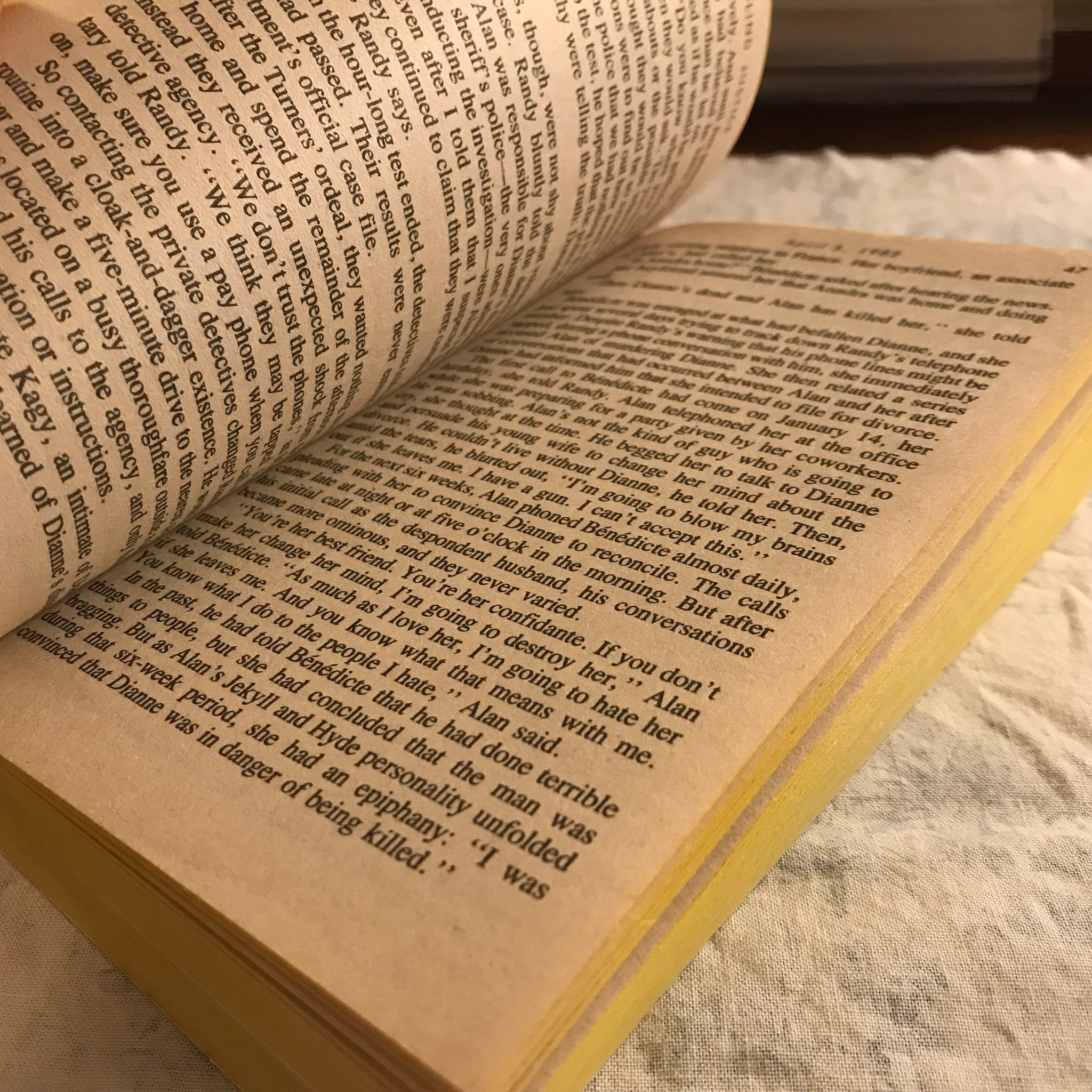 In any event, a previous owner loved this paperback well, and it has a cracked spine with a lean, some page toning, edgewear, and a split at the front hinge -- but the pages are unmarked and fairly snug. A decent reading copy.