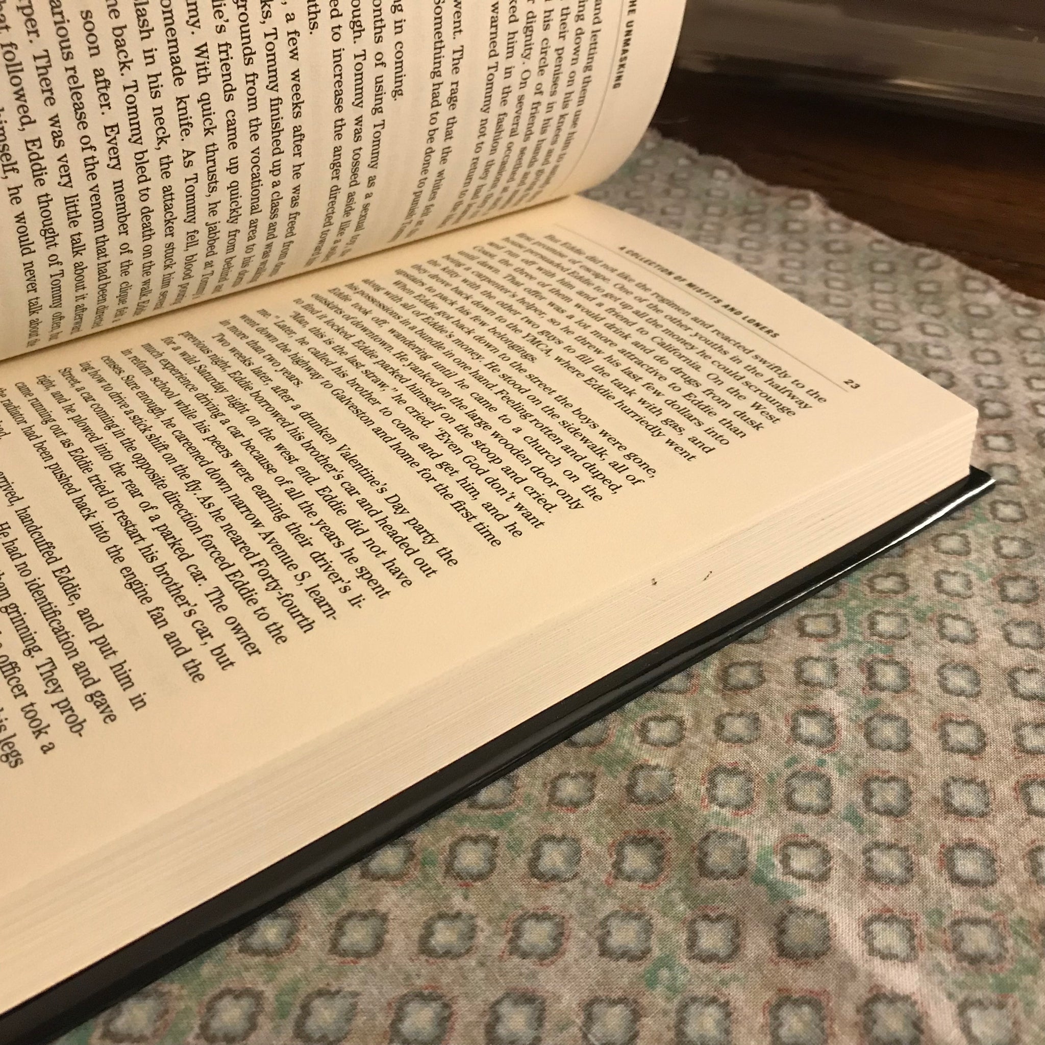 This hardcover’s in pretty good shape, amateurish design notwithstanding: mild edgewear and some rubbing to the jacket, verrry slight outward bow to the back board, but nice and bright inside, may not have been read.