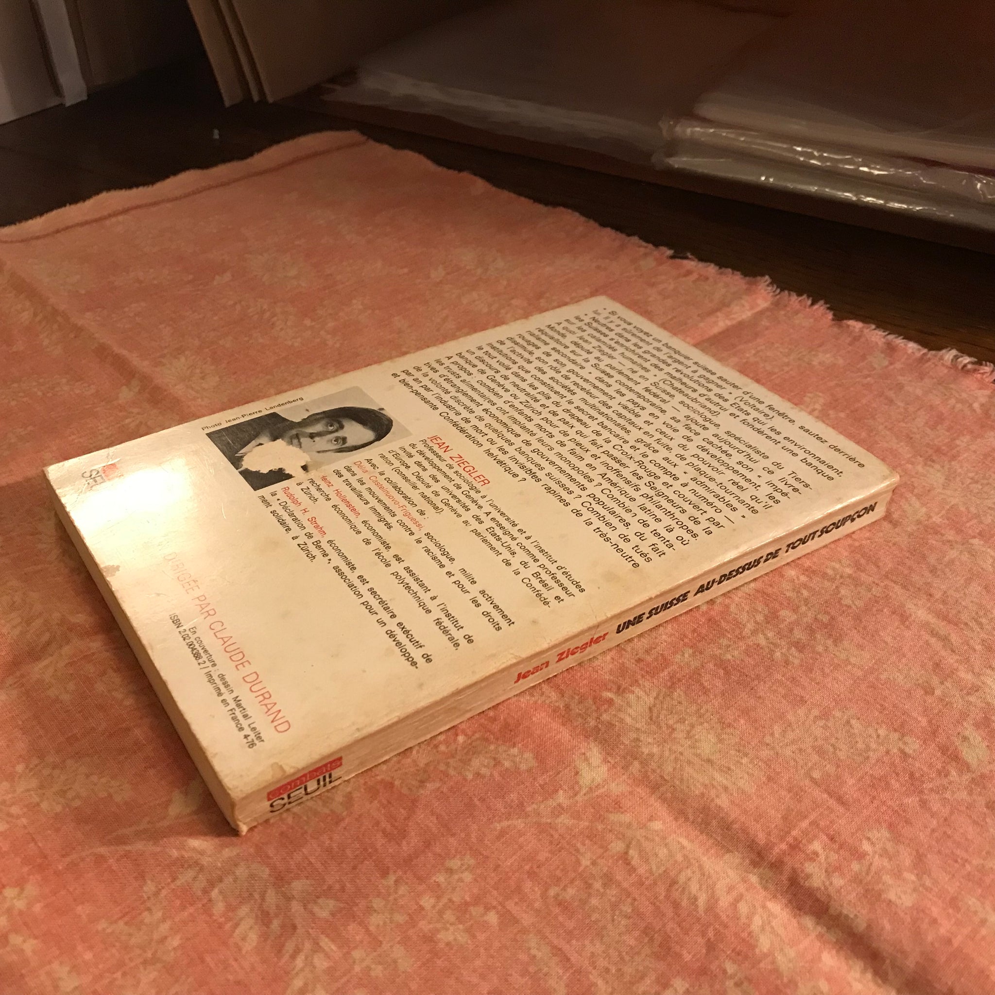 By Jean Ziegler. From the shop's French-translation associate, Mlle CL: "a Switzerland above suspicion. From what I have read, it's more a political essay on the fact that so much money destined to third world countries were diverted through the Swiss bank system. The author contends that the so-called neutrality of the country covers a multitude of financial crimes."